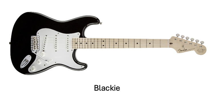 Kasım 1970'te Eric, Dominos ile turneye çıkarken Nashville, Tennessee'deki Sho-bud gitar dükkanından altı adet Fender Stratocaster satın aldı. Üçünü George Harrison, Steve Winwood ve Pete Townshend'e verdi. 1985'te emekliye ayrılana kadar en sevdiği sahne gitarı olan "Blackie"yi yaratmak için kalan üçünün en iyi bileşenlerini bir araya getirdi. Bu gitarı “56/57 Strat melez" olarak tanımladı. 24 Haziran 2004'te uyuşturucu ve alkol bağımlılıkları için Crossroads Merkezi'ne para toplamak amacıyla New York'taki Christie's Müzayede Evi'nde "Blackie"yi 959.500 ABD doları karşılığında sattı. "Brownie" şu anda Experience Music Project'te sergileniyor.